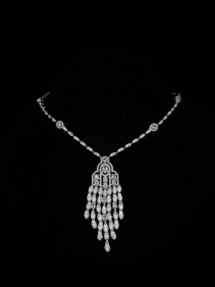 (Silver Choker Necklace) O&A سلسال شوكر زيركون مطلي فضي