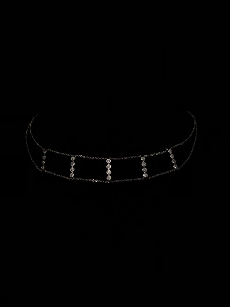 (Silver Choker Necklace) O&A سلسال شوكر زيركون مطلي فضي