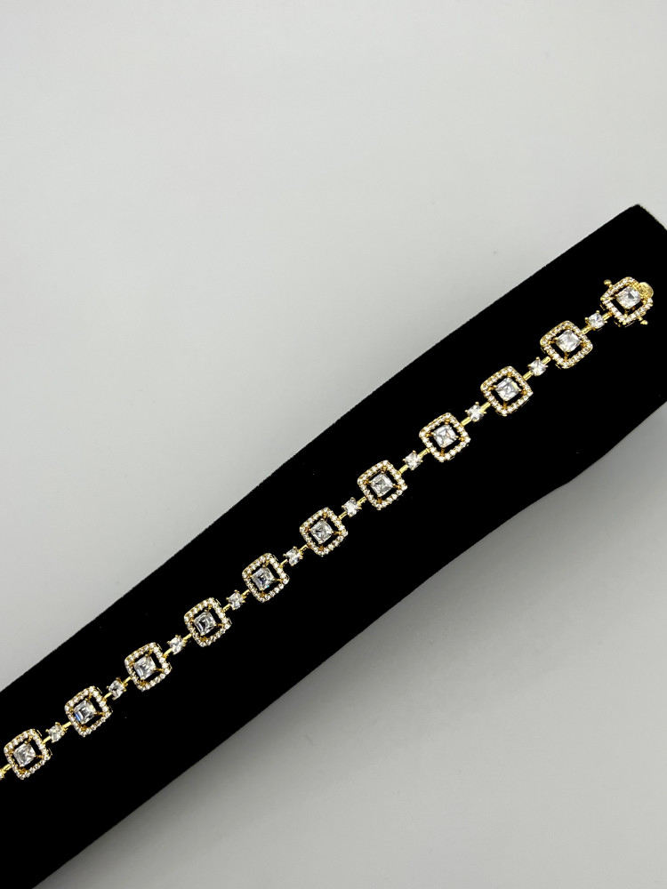 (Bracelet) O&A إسوارة زيركون مطلي فاخرة ذهبي