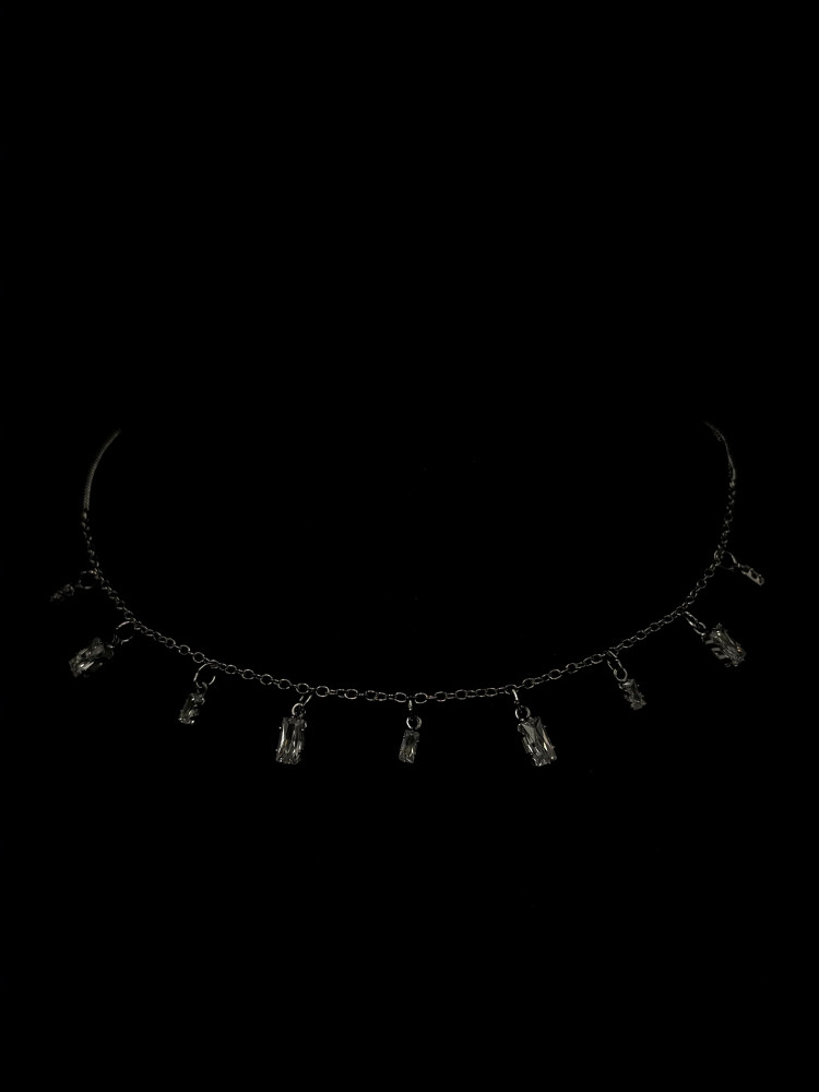 (Silver Choker Necklace) O&A سلسال شوكر زيركون مطلي فضي