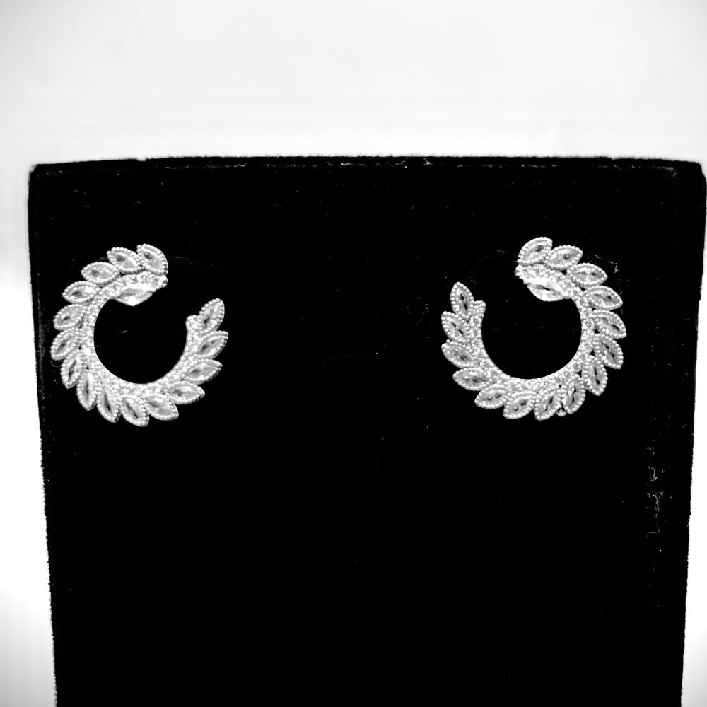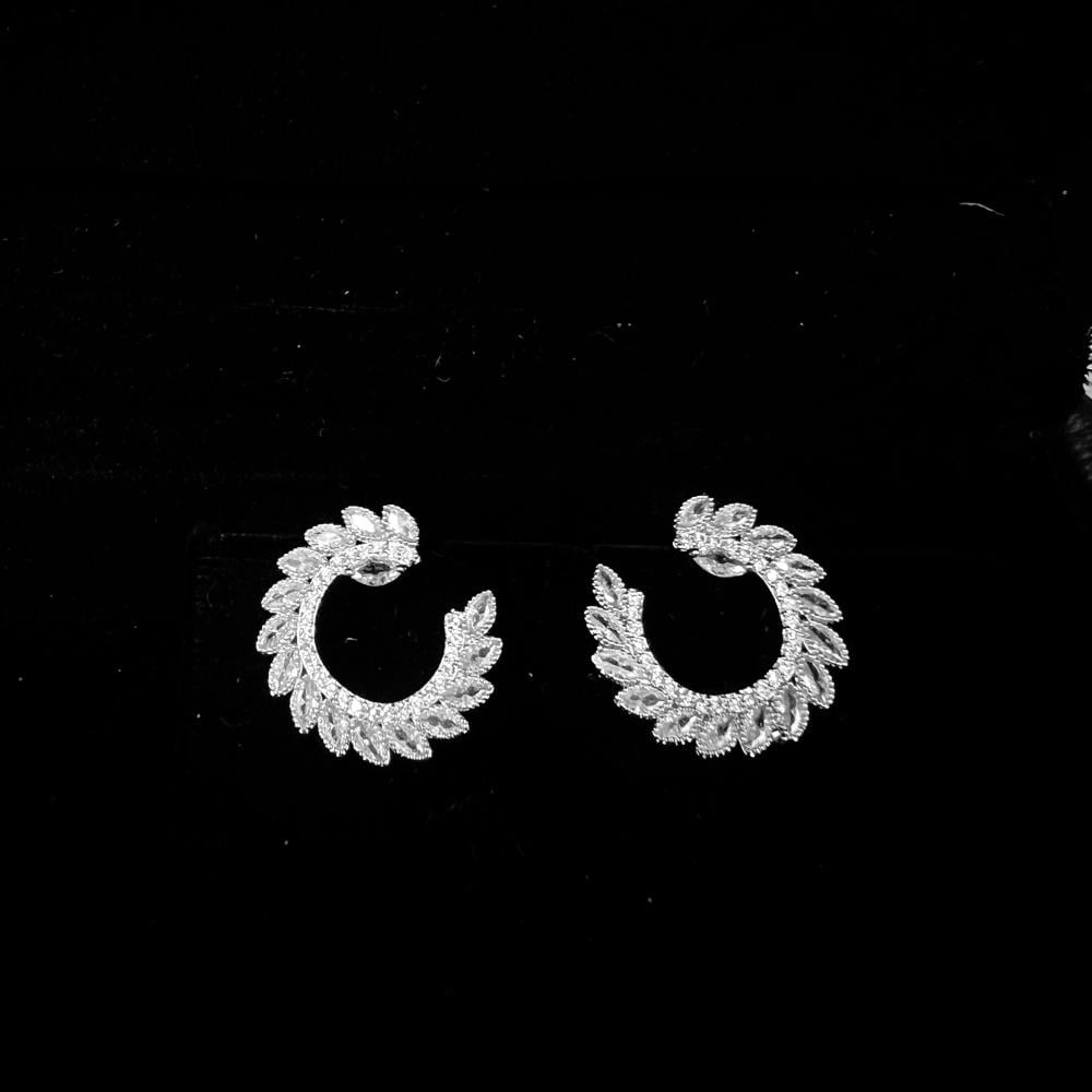 (Silver Earring) O&A حلق زيركون مطلي فضي